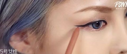 第六步:上眼線畫至眼尾的時候,就用眼線筆往下眼線處向前勾畫,至眼珠位置就可以了,這樣畫可以使眼睛看起來更大哦。