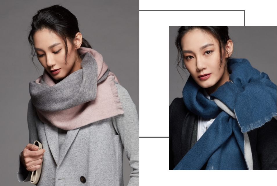 品牌追求自然簡(jiǎn)約的風(fēng)格,拼色圍巾是熱門(mén)單品。 正反兩面采用特殊工藝織出不同深淺的顏色,在乏味冬天打造別樣的豐富色感, 是秋冬搭配的必備單品。