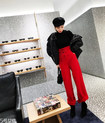 紅色褲子配同色系上衣搭配出顏色的層次感,“年味兒”十足;搭配其他彩色系,撞色的混搭風(fēng),個(gè)性十足,尤其是紅色搭配藍(lán)色是撞色中的最佳選擇,絕對(duì)是街頭的焦點(diǎn)。