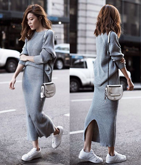 毛衣配長裙,溫柔感上升N個檔次,下半身微胖也不用擔心,哪里有肉遮哪里,顯瘦苗條全給你!