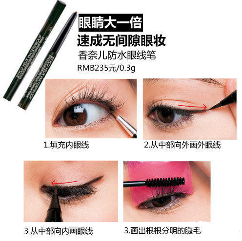 具有啞光、星光、金屬光三種不同質地,可以滿足不同妝感的需要,其質地非常柔滑上色容易,色彩的飽和度也非常高,配有專用眼線刷,能打造出粗細不同的眼部線條,連小細節(jié)一樣可以顧及得到,更值得一提的是它良好的防水性能,讓眼妝持久不暈。