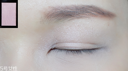 首先先用裸粉色掃在整個(gè)眼窩作為提亮打底。