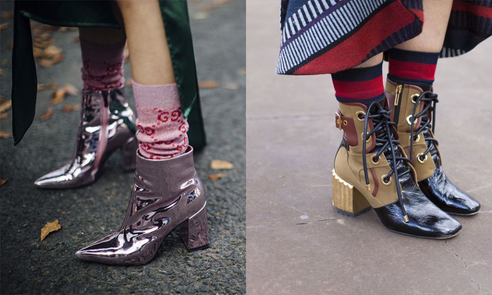 這股襪子加跟鞋的風潮可是超級夯!如果想先淺嘗這股趨勢的讀者們,可以選擇黑白素色襪,利用同色系或對比色,搭配跟鞋能讓白襪的學生一掃而空,安全時髦又好看!
