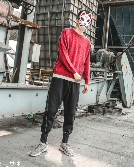 紅色毛衣搭配運動褲