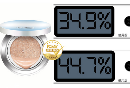 使用前肌膚水分值為34.9%,肌膚狀態(tài)較為干燥,使用產品后水分上升到44.7%,肌膚立刻變得水潤,說明產品本身具有不錯的補水保濕效果,上妝后,可提升肌膚水潤度,不易產生卡粉、脫皮等現象。