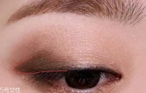 第六步:深棕色眼影壓在外眼尾同時(shí)稀釋眼線。