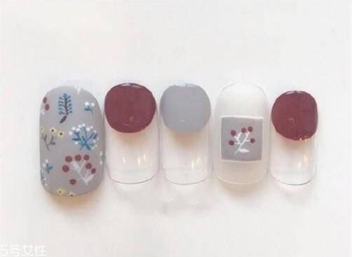 美觀度一般拔,單調(diào)的甲油底色配上多彩的花紋圖案,但是又點(diǎn)太花了,小編更喜歡簡單大方一些的圖案搭配。