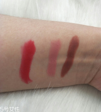 有三個色號。三個色號分別是兩個MLBB搭一個大紅,毫無疑問PATRICK WOO絕對是最搶眼了那款了~明亮的冷調(diào)大紅色,還摻加著很不明顯的玫紅調(diào),可以讓你瞬間變得風情萬種,而且完全不挑膚色,十分百搭。