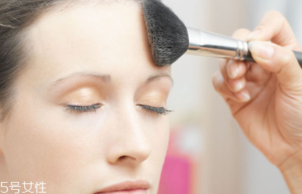 第四步:刷子涂抹額頭,其實(shí)額頭也可以最先刷。由額頭正中央的位置向兩側(cè)均勻刷開(kāi),可以多刷幾次,在靠近發(fā)髻的地方最好是用刷子一筆帶過(guò),這樣不會(huì)導(dǎo)致粉底不均勻。