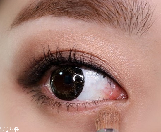 首先妹子們可以取一啞光淺棕色眼影,涂抹在整個(gè)上眼皮,做好眼部打底。