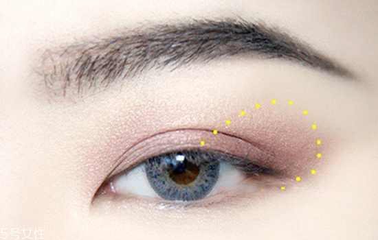 第三步:棕色在眼尾二分之一處向上暈染,范圍稍稍大于雙眼瞼。