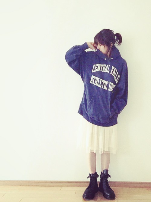 生性隨和的丹寧,幾乎跟誰都可以很融洽,與帽T的結(jié)合看起來就會很有歐美范兒,不想要太過男子氣概,下身可以搭上女孩感的A字裙、蕾絲裙等等。