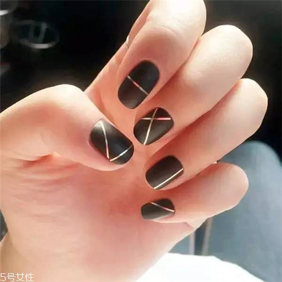 這款美甲是黑色磨砂的甲面加上銀色的條紋,非常的簡約時尚,是一款偏歐美風(fēng)的款式,非常適合比較潮的人。
