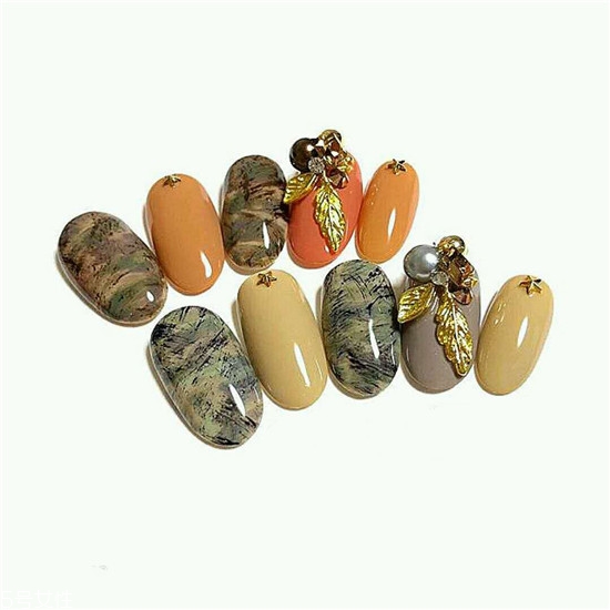 這種日式和風(fēng)的美甲,配色一定要有綠色,才會(huì)最好看,也最經(jīng)典。