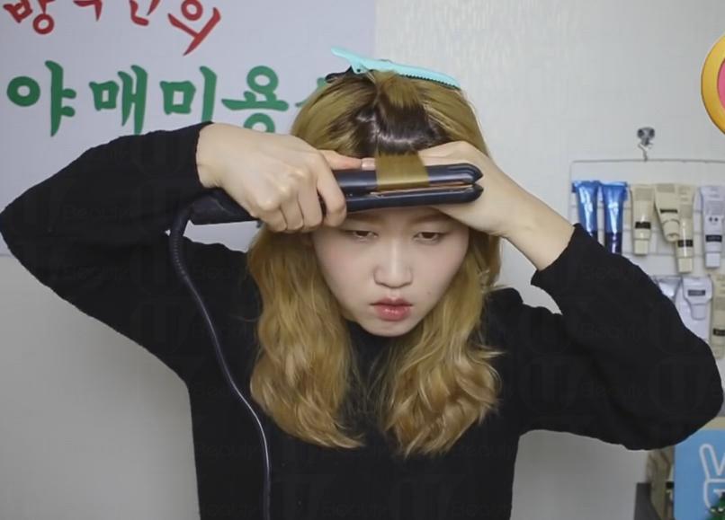 3. 把瀏海分開數(shù)小撮,然后再逐一夾彎,加強(qiáng)弧度及層次感。