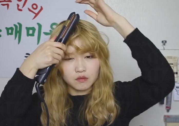 3. 把瀏海分開(kāi)數(shù)小撮,然后再逐一夾彎,加強(qiáng)弧度及層次感。