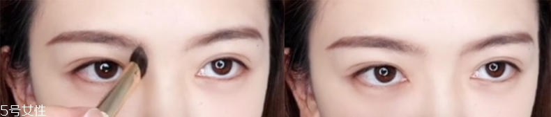 眼影的步驟不需要復雜,去一個咖啡色的眼影,重點暈染在眼睛后半部分,其中包括下眼影也是在眼睛的后半部分,暈染的程度是睜眼可見就夠了。再去一個深咖啡色眼影暈染在眼影根部,給眼影做一個遞進效果,一個很簡單的眼影就完成了。