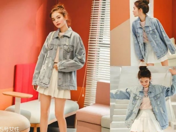 3、牛仔外套可是最經(jīng)典時(shí)尚的,春秋冬季節(jié)都很流行,不管經(jīng)過(guò)多少時(shí)間的流逝,牛仔外套都能以全新的面貌來(lái)迎接,這款2018年春季新款,短款版型,比起長(zhǎng)款更多了一點(diǎn)簡(jiǎn)潔利落,矮個(gè)子專(zhuān)屬必備,破洞設(shè)計(jì),更添潮感,里面選擇一件淺粉t恤+白色百褶短裙,瞧瞧,這套穿搭是不是很顯青春活力呢?