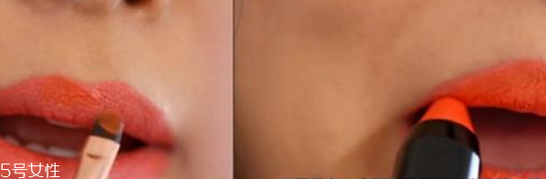 唇線刷的方法和第一種技巧一樣,涂好后為了顯色,可以再用唇膏涂一下完成