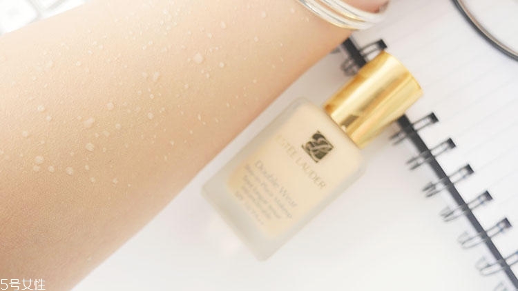 7、【防水性評測】粉底液的持久度,是夏季女生們在挑選粉底液時關(guān)注的問題之一,持久度好的粉底液,不僅能讓我們時刻擁有白皙無暇的肌膚,還能讓我們不為脫妝帶來的尷尬而苦惱。首先我在涂抹了dw持妝粉底液的手背肌膚上,噴灑水,從圖中我們可以看出,手背上形成了許多的小水珠,并沒有出現(xiàn)溶妝或者脫妝的現(xiàn)象,說明它的防水效果蠻好的,妝效持久。即使是夏季出汗過多或者是游泳也不用擔(dān)心會花妝喲~