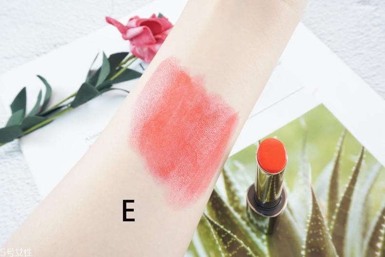 E殺死比爾:這是個(gè)很元?dú)?、很活潑的珊瑚色,白皮黃皮都能用,提氣色的神器,就像加入了牛奶的西瓜紅,柔和細(xì)膩,百搭不挑妝。