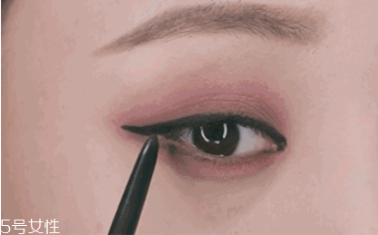 5. 填補(bǔ)內(nèi)眼線之后,平著拉長眼尾。