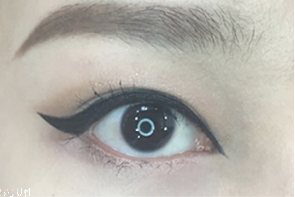 拉長眼型的眼線畫完了,這樣勾勒出的眼睛就比較氣質(zhì),特別是眼角收尾非常的有型,好看,比較適合氣質(zhì)美女了。