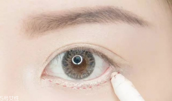 第四步 閃亮下眼線先用帶閃粉的白色(或米色)眼影筆化眼線
