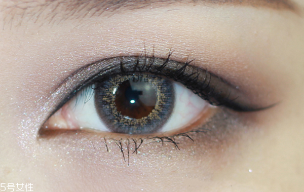 第三步:棕色眼線(xiàn)筆拉出眼尾,眼尾微微上翹,描繪下眼頭部分,拉長(zhǎng)眼型。帶上自然款假睫毛,眼尾補(bǔ)畫(huà)幾根下睫毛,刷上睫毛膏即可。