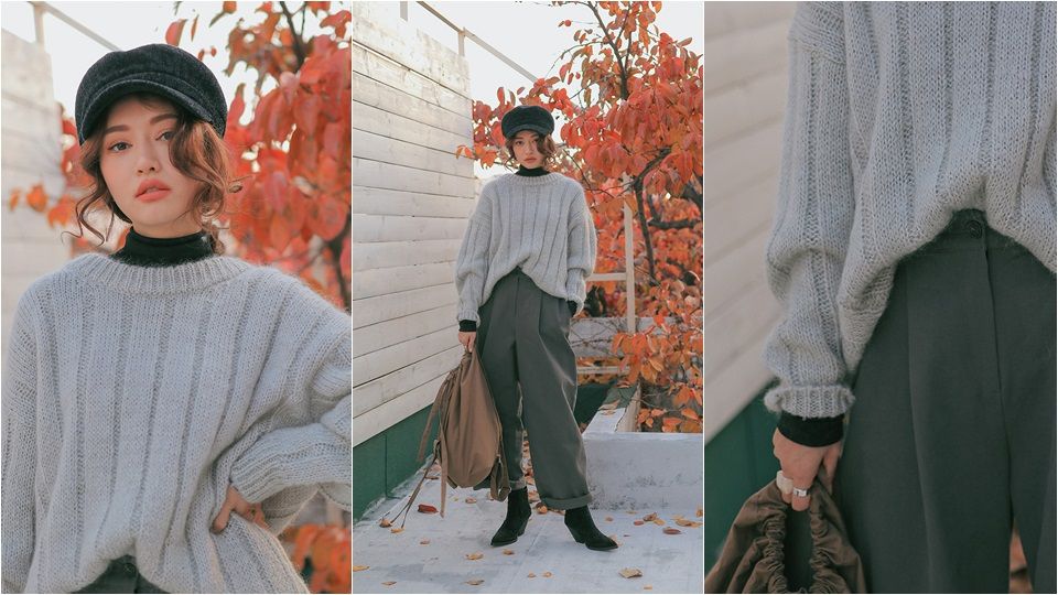 選擇和毛衣同色系的下半身,看起來很和諧,也會(huì)有連貫視覺的顯瘦效果。特別是溫暖的卡其色和咖啡色,一起穿讓整個(gè)人的氣質(zhì)都溫柔了起來。