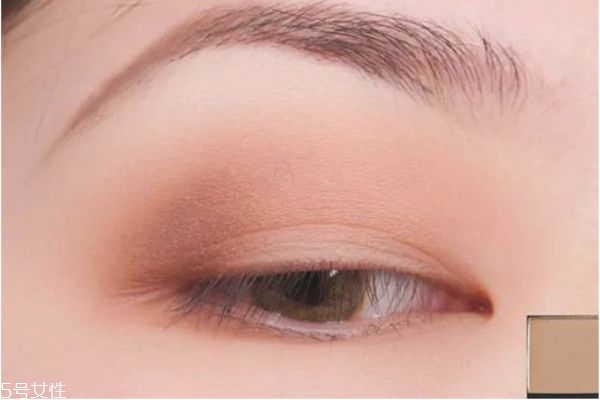 第一步:用眼影刷沾取一個(gè)淺咖色眼影鋪滿眼皮。