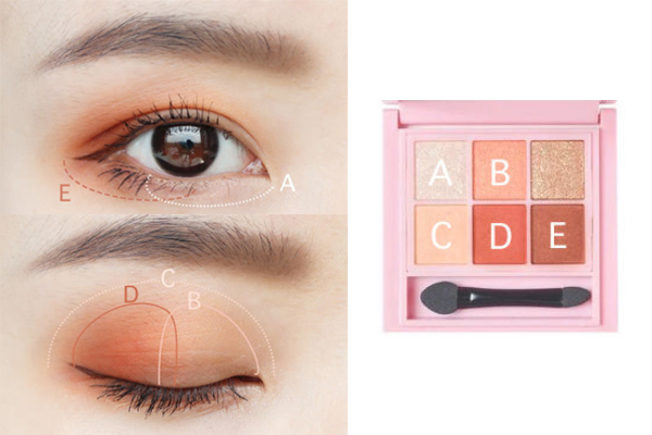 2.b色d色分別在上眼皮前后半段暈染。