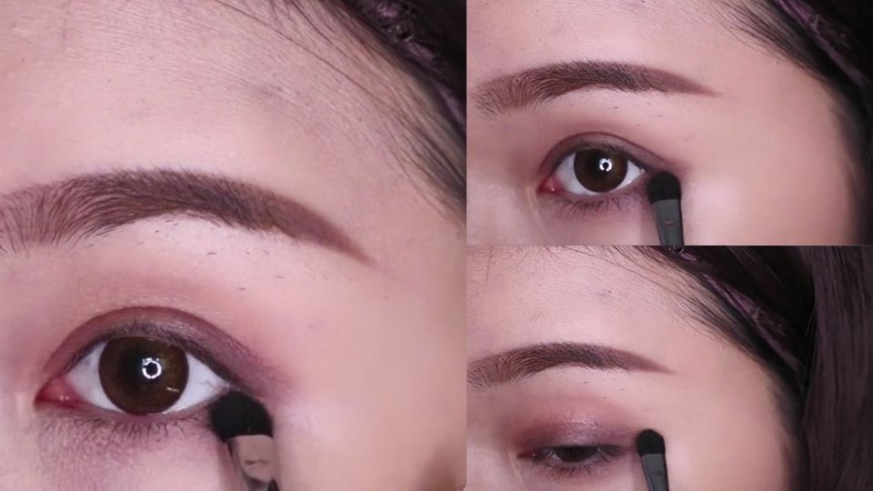 3、眼影重點(diǎn)在眼尾,眼尾三層疊加,眼頭、眼窩兩層