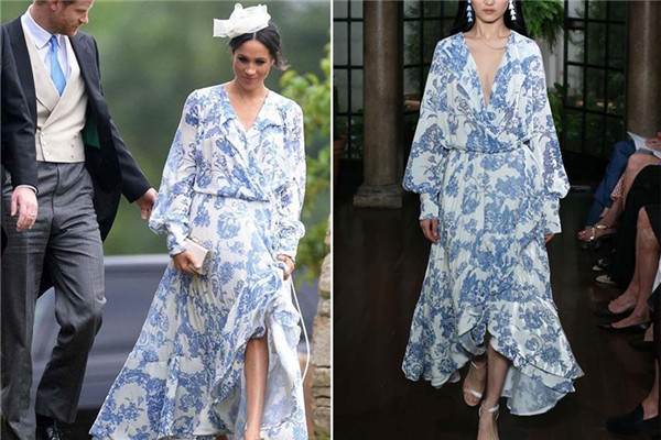 最近生下小王子的英國王妃梅根Megan Markle今年初也穿著Oscar de la Renta春夏洋裝出席活動,法式印花搭配訂制小白紗帽,王妃的氣場全開~。