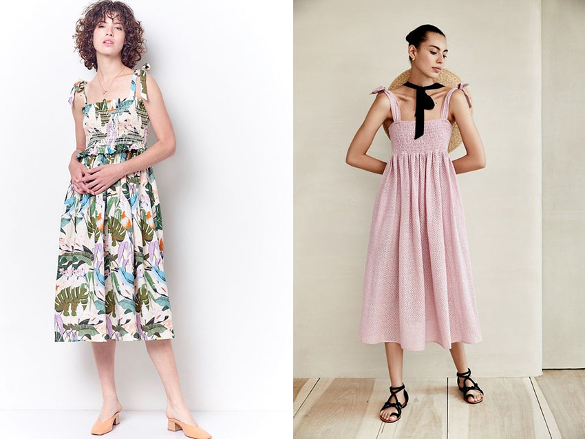 甜美又涼快,還不用多思考穿搭的單品就是皺褶小洋裝啦~皺褶設計輕輕的服貼胸口、高腰+過膝設計一次修飾腰腹臀及大腿,露出最細的腳踝,簡直夏日顯瘦神器。搭配穆勒鞋,像個度假貴婦、女人味爆棚(左);搭配草帽及平底涼鞋又是一枚天真少女。