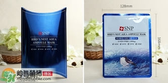 2、袋子外形特點:正品SNP燕窩水庫面膜袋子邊緣四角為圓角,袋子中間無任何打孔。假冒的SNP燕窩水庫面膜袋子邊緣四角為四角,袋子snp商標上面有圓形打孔。