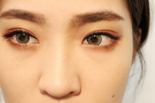 3)強(qiáng)調(diào)色:從睫毛根部畫至眼窩凹陷處,然后涂勻
