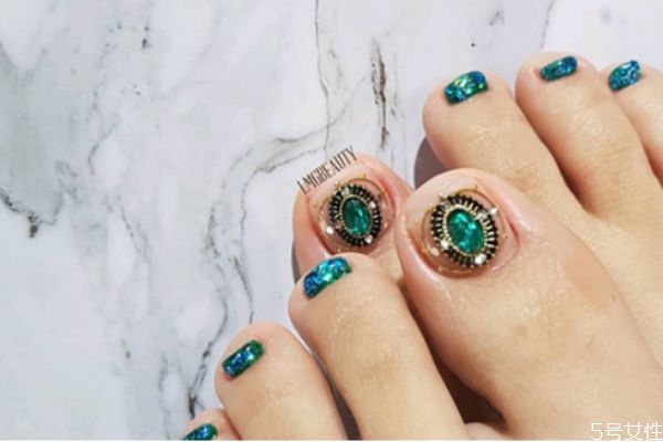 第四款整體采用的是白色,然后同樣也是在大腳趾上面采用了銀色小鉆寶貝綠色大鉆的形式,同時(shí)其他腳趾上面也采用了綠色貼片作為裝飾,細(xì)節(jié)滿滿的一款喲~