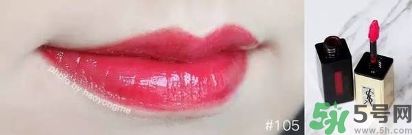 如果說#103是華妃,那么#105就是甄嬛啊,各自都美得不要不要的。#105比#103更珊瑚一些,和#7號的顏色有點像,不過略濃一些。它的閃粉是蜜桃金色,甜而不膩,灰常適合約會,黃皮的妹子涂起來也無壓力。