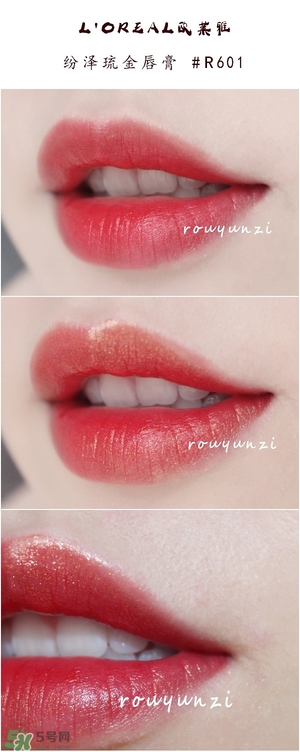 歐萊雅紛澤琉金唇膏m601是李冰冰的同款色,和它們家的金色唇膏G101疊加一起使用就是大熱的人魚姬色了,而且整個顏色單獨使用也很好看,是很正很有氣場的紅色,下面一起來看看試色吧!