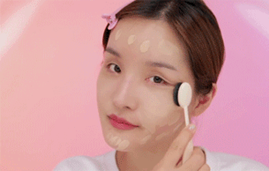 注意下頜角和脖子交界、發(fā)際線處暈染號,牙刷粉底刷輕按面部,將粉底輕輕戳進皮膚里。