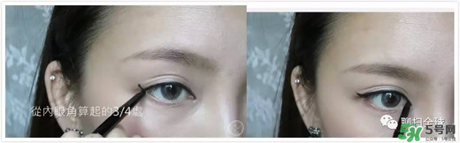 畫完熟女貓眼后,把下眼線的1/3處接近睫毛根部也畫上眼線,讓眼睛更圓潤(rùn)。