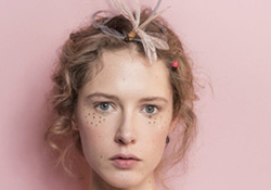 眼妝也比較自然,一盤粉橘色系眼影搞定!先用左下的顏色打底,左上珠光色做中間和眼頭部位的提亮,混合右下的色稍微暈染加深一下眼尾,最后畫下眼影