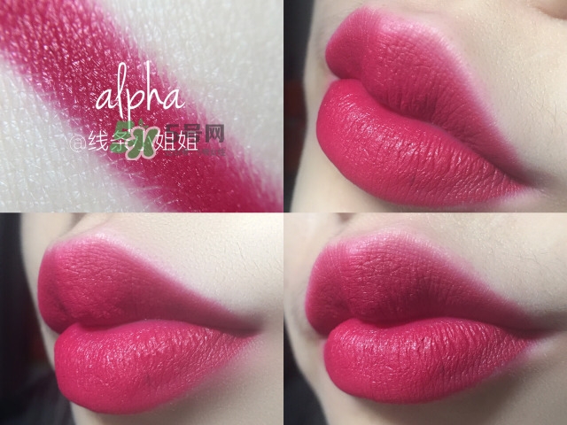 1alpha我之前單獨(dú)出過試色,是里面唯一一個(gè)我有正裝的。(其他都是在專柜,買這只送的小樣)一個(gè)復(fù)古深玫紅色超級好看,顯白,黃皮可嘗試。[心]