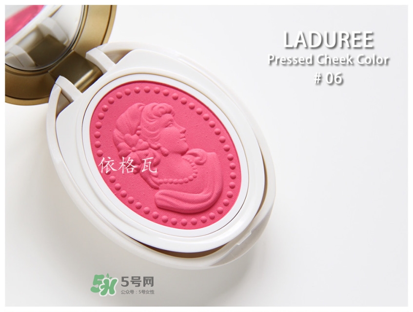 06號(hào)的顏色要稍微深一些,屬于玫紅色。個(gè)人感覺浮雕腮紅是LADUREE腮紅中最上色的一款,尤其06號(hào)顏色比較深,下手一定要輕一點(diǎn)。