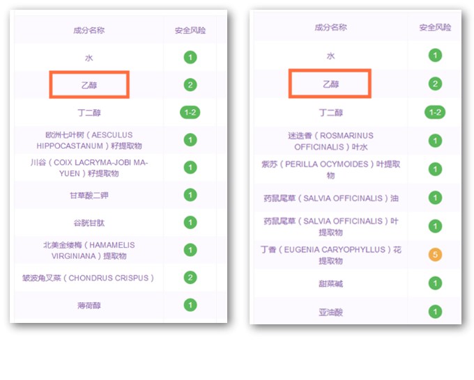 從成分表來看,健康水、紫蘇水,本質(zhì)上都是一類水——適合健康油皮使用的,高酒精含量的妝水。高比例酒精的好處是: