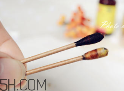 在滴取碘酊的棉簽上沾取適量的面霜,看到棉簽明顯被還原變白,說明面霜具有很好的抗氧化能力,美白效果很不錯。