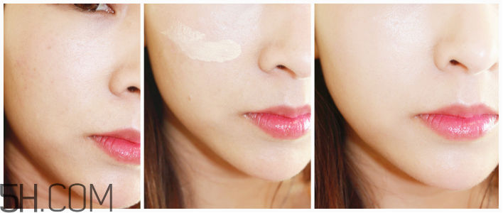 從圖片上可以看到,使用過粉底霜的手部肌膚明顯更加細膩靚白。
