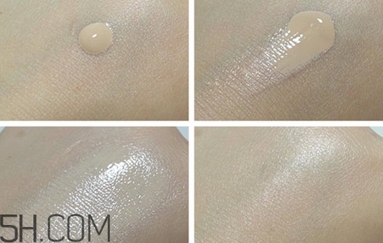 手背上的測試結(jié)果,能看出來粉底液很好推開,推開后在肌膚上也很均勻,水潤度很高,能讓肌膚散發(fā)自然的光澤。