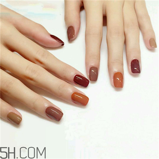 這款焦糖色的美甲是不是非常的顯手白呢,而且也很適合短指甲的妹子哦。